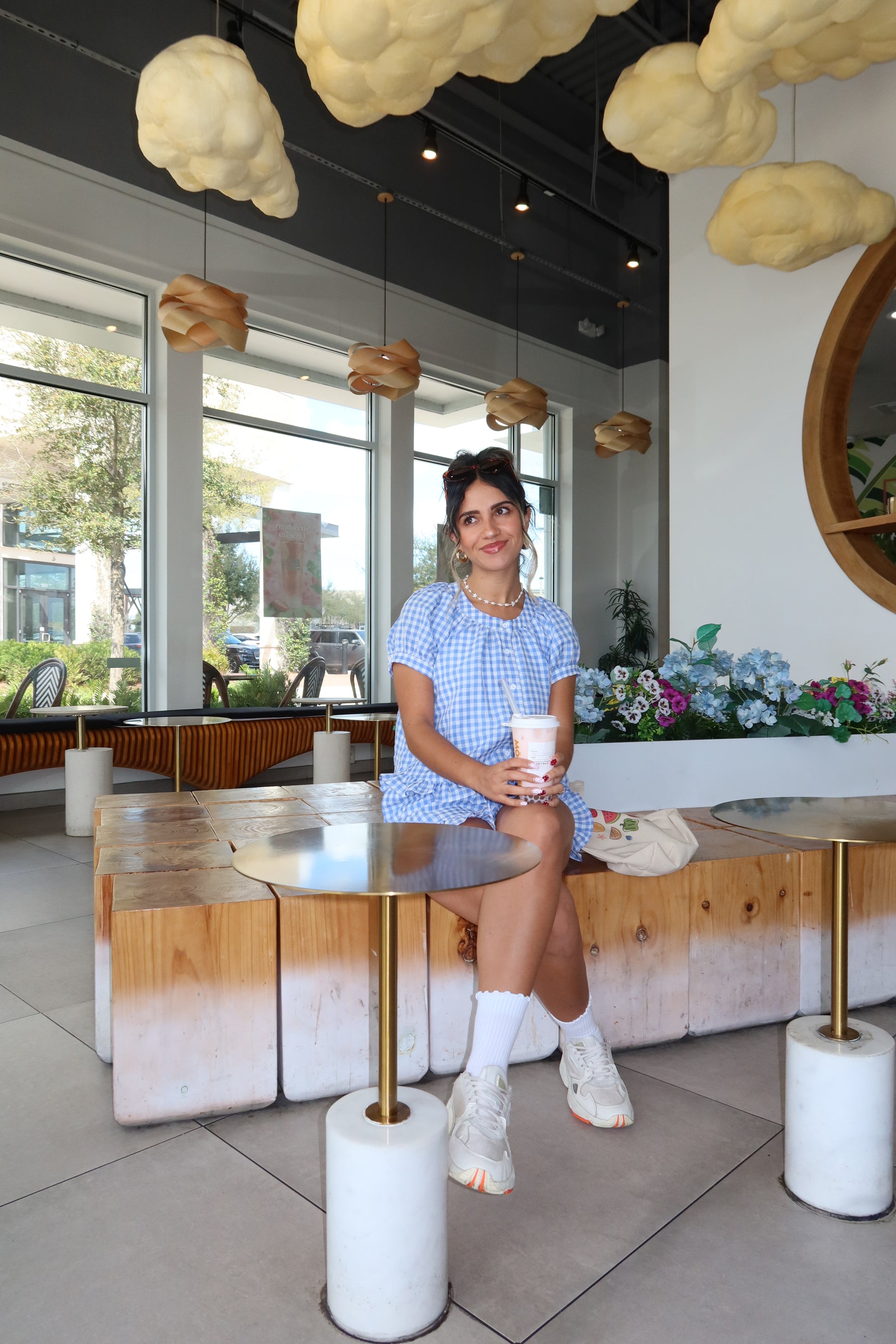 - Blue & white gingham print